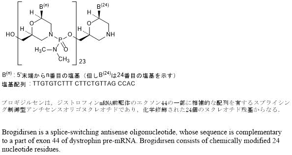 | Brogidirsen | ブロギジルセン | 2409088-11-3 | C280H440N119O105P23 | 7865.62 | [日本上市数据][FDA GSRS] | |
