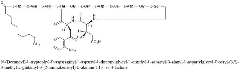 | Daptomycin | ダプトマイシン | 103060-53-3 | C72H101N17O26 | 1620.67 | [日本上市数据][FDA GSRS] | |