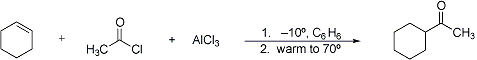 | 277. | Nenitzescu Reductive Acylation C. D. Nenitzescu, E. Cioranescu, Ber. 69, 1820 (1936). Hydrogenative acylation of cycloolefins with acid chlorides in the presence of aluminum chloride; with five- and six-membered rings no change in ring size occurs but with seven-membered rings rearrangement takes place with formation of a cyclohexane derivative: