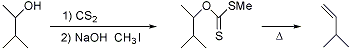 | 74. | Chugaev Reaction (Tschugaeff Olefin Synthesis) L. Chugaev (Tschugaeff), Ber. 32, 3332 (1899). Formation of olefins from alcohols without rearrangement through pyrolysis of the corresponding xanthates via cis-elimination: