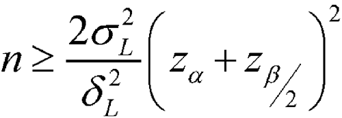When a log transformation is required to achieve normality, the sample size formula needs to be slightly adjusted as shown below. Instead of formulating the problem in terms of the population variance and the largest acceptable difference,