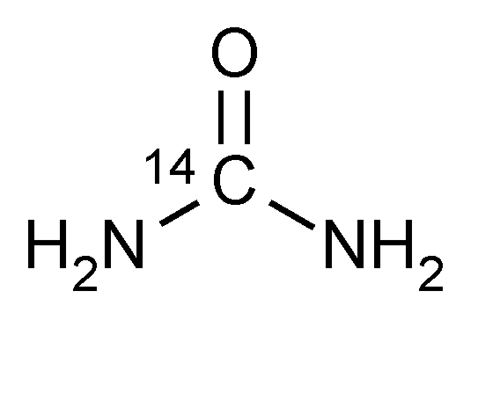 » Urea C 14 Capsules contain 14CH4N2O in which a portion of the molecules are labeled with radioactive 14C to provide 0.04 MBq (or 1 µCi) of radioactivity per capsule. It contains not less than 90.0 percent and not more than 110.0 percent of the labeled amount of 14C expressed as MBq (or µCi).