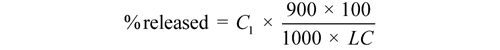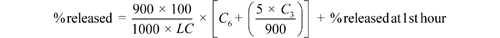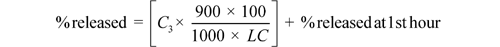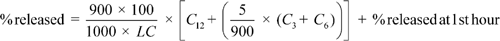 Percentage released at first hour (see Formula 1). Percentage released at third hour (see Formula 2). Percentage released at sixth hour (see Formula 3). Percentage released at twelfth hour (see Formula 4).