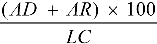 in which AD is the amount, in mg, of isosorbide mononitrate dissolved at a given time point; AR is the amount, in mg, of isosorbide mononitrate removed at the previous time point; 100 is the conversion factor to percentage; and LC is the Tablet label claim, in mg.