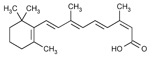 Retinoic acid, 13-cis-. 3,7-Dimethyl-9-(2,6,6-trimethyl-1-cyclohexen-1-yl)2-cis-4-trans-6-trans-8-trans-nonatetraenoic acid » Isotretinoin contains not less than 98.0 percent and not more than 102.0 percent of C20H28O2, calculated on the dried basis.