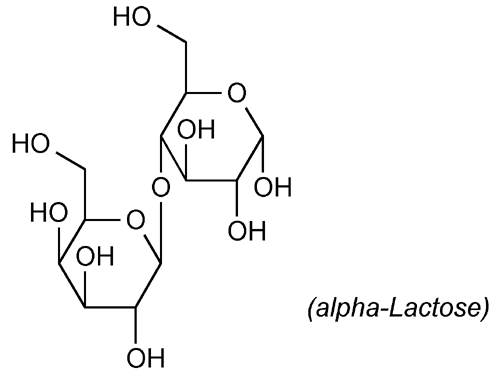 Prepare a mixture of alpha lactose monohydrate and beta lactose having an anomeric ratio of about 1:1 based on the labeled anomeric contents of the alpha lactose monohydrate and the beta lactose.