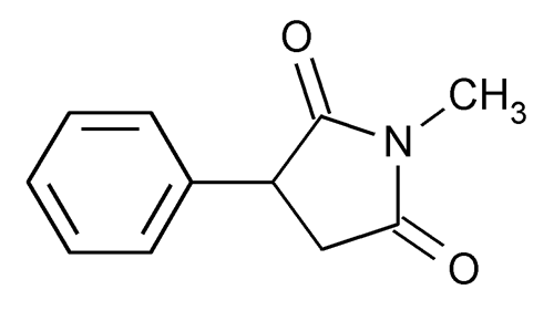 2,5-Pyrrolidinedione, 1-methyl-3-phenyl-, (±)-. (±)-N-Methyl-2-phenylsuccinimide » Phensuximide contains not less than 97.0 percent and not more than 103.0 percent of C11H11NO2, calculated on the anhydrous basis.