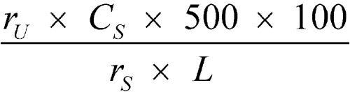 in which rU and rS are the peak responses obtained from the Test solution and the Standard solution, respectively; CS is the concentration, in mg per mL, of USP Risperidone RS in the Standard solution; 500 is the volume, in mL, of Medium; 100 is the conversion factor to percentage; and L is the Tablet label claim in mg.