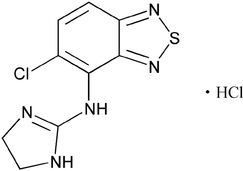 2,1,3-Benzothiadiazol-4-amine, 5-chloro-N-(4,5-dihydro-1H-imidazol-2-yl)-, monohydrochloride. 5-Chloro-4-(2-imidazolin-2-ylamino)-2,1,3-benzothiadiazole monohydrochloride » Tizanidine Hydrochloride contains not less than 98.0 percent and not more than 102.0 percent of C9H8ClN5S·HCl, calculated on the dried basis.