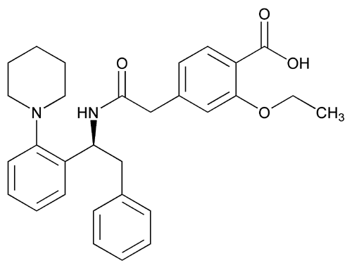 Click to View Structure [(S)-2-ethoxy-4-[2-[[2-phenyl-1-[2-(1-piperidinyl)phenyl]ethyl]amino]-2-oxoethyl]benzoic acid] (C30H34N2O4 486.61) .
