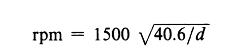 The preferred centrifuge has a diameter of swing (d = distance from tip to tip of whirling tubes) of 38 to 43 cm and is operated at a speed of about 1500 rpm. If a centrifuge of different dimensions is used, calculate the desired rate of revolution by the formula: