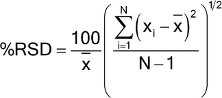 Replicate injections of a standard preparation or other standard solutions are compared to ascertain whether requirements for precision are met. Unless otherwise specified in the individual monograph, data from five replicate injections of the analyte are used to calculate the relative standard deviation, %RSD, if the requirement is 2.0% or less; data from six replicate injections are used if the relative standard deviation requirement is more than 2.0%.