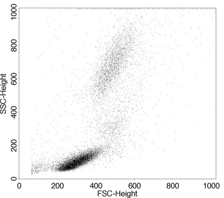 Excessive cell handling (e.g., vortexing), improper fixation, and bacterial contamination of the cells can all increase the particulate background. In addition, if the instruments forward threshold is set too low, cell debris will be detected as events. Gentle cell handling, fresh reagents, and appropriate instrument settings help ensure consistent side scatter profiles.