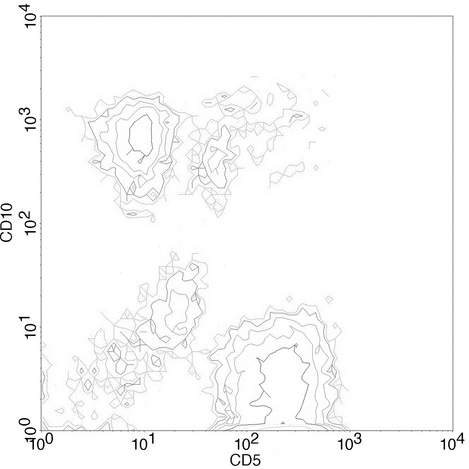 Figure 5. Bivariate contour plot showing relative numbers of cells present in each channel that co-express 2 CD markers.
