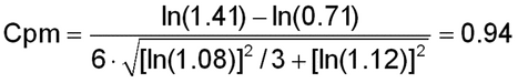 The choice of a bound on Cpm is a business decision. The proportion of lots that are predicted to be outside their specification limits is a function of Cpm. Some laboratories require process capability corresponding to Cpm greater than or equal to 1.3. This corresponds to approximately a 1 in 10,000 chance that a lot with potency at the center of the specification range will be outside the specification limits.