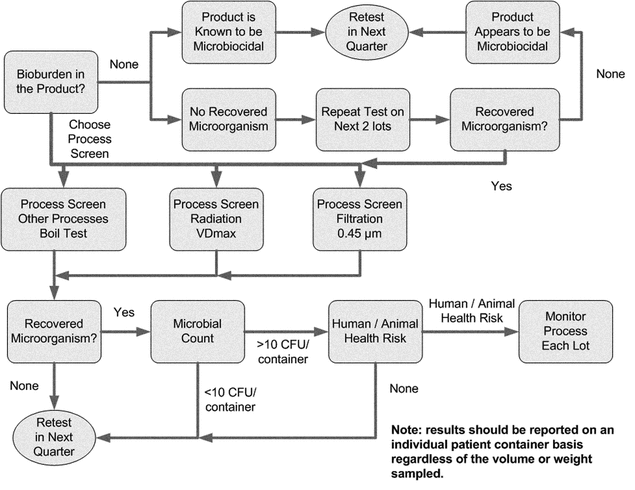 Materials and products that are to be sterilized should be examined to determine the level of bioburden in the article. Determining the microbial population level is an essential element in ensuring process efficacy. For lethal processes other than radiation, the presence of Gram-positive spore-formers represent the greatest potential for survival. The potential resistance of the bioburden to the specific sterilization process is an important consideration and can be evaluated by a screening process. Isolates that are identified as Gram-negative rods have the potential to cause high levels of endotoxin. Figure 1 illustrates one possible bioburden screening program.