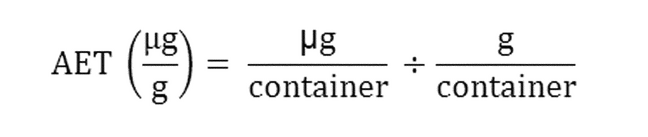Analytical Evaluation Threshold (AET) is the threshold at or above which a leachable should be characterized and reported for toxicological assessment. The AET can be mathematically derived from the SCT (or other threshold concepts) based on factors that include the dosing parameters of the drug product.