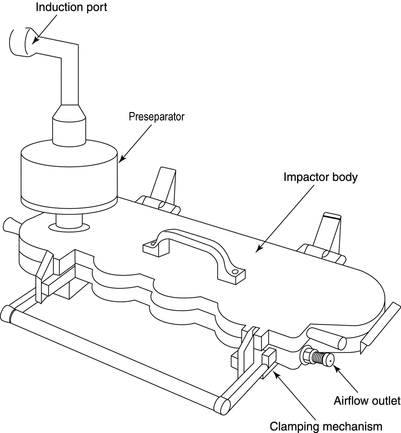 The cascade impactor is available as Model 160 Marple Miller Impactor from MSP Corporation, Minneapolis, MN. The product should be connected to the impactor via the induction port shown in Figure 6a.