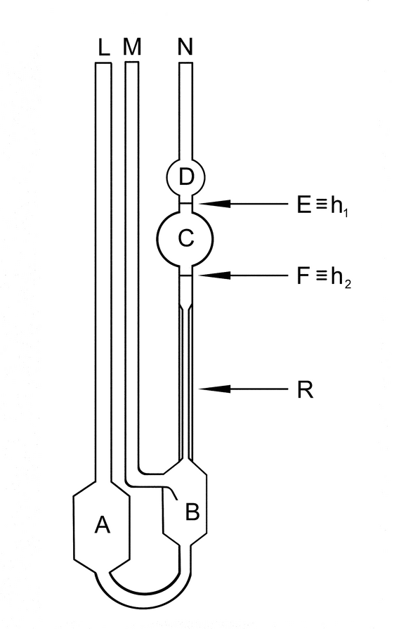 Fill the viscometer through tube (L) with a sufficient quantity of the sample liquid that is appropriate for the viscometer being used or by following the manufacturers instructions. Carry out the experiment with the tube in a vertical position. Fill bulb (A) with the liquid, and also ensure that the level of liquid in bulb (B) is below the exit to the ventilation tube (M). Immerse the viscometer in a water or oil bath stabilized at the temperature specified in the individual monograph, and control the temperature to ±0.1