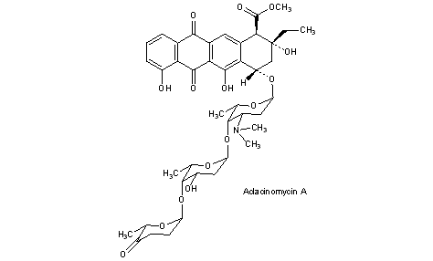 CAS Name: [1R-(1a,2b,4b)]-2-Ethyl-1,2,3,4,6,11-hexahydro-2,5,7-trihydroxy-6,11-dioxo-4-[[2,3,6-trideoxy-4-O-[2,6-dideoxy-4-O-[(2R-trans)-tetrahydro-6-methyl-5-oxo-2H-pyran-2-yl]-a-L-lyxo-hexopyranosyl]-3-(dimethylamino)-a-L-lyxo-hexopyranosyl]oxy]-1-naphthacenecarboxylic acid methyl ester