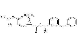CAS Name: (1R,3S)-2,2-Dimethyl-3-[(1Z)-3-oxo-3-[2,2,2-trifluoro-1-(trifluoromethyl)ethoxy]-1-propenyl]cyclopropanecarboxylic acid (S)-cyano(3-phenoxyphenyl)methyl ester