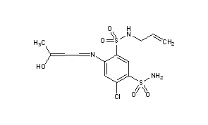 CAS Name: 4-Chloro-6-[(3-hydroxy-2-butenylidene)amino]-N1-2-propenyl-1,3-benzenedisulfonamide
