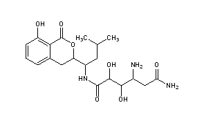 CAS Name: 3-Amino-2,3-dideoxy-N6-[1-(3,4-dihydro-8-hydroxy-1-oxo-1H-2-benzopyran-3-yl)-3-methylbutyl]hexaramide