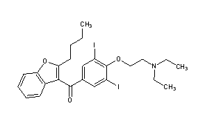 Additional Names: 2-butyl-3-benzofuranyl-4-[2-(diethylamino)ethoxy]-3,5-diiodophenyl ketone; 2-butyl-3-[3,5-diiodo-4-(b-diethylaminoethoxy)benzoyl]benzofuran