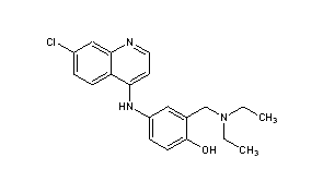 Additional Names: 4-[(7-chloro-4-quinolyl)amino]-a-(diethylamino)-o-cresol; 7-chloro-4-(3-diethylaminomethyl-4-hydroxyanilino)quinoline; 7-chloro-4-(3-diethylaminomethyl-4-hydroxyphenylamino)quinoline; 4-(3¢-diethylaminomethyl-4¢-hydroxyanilino)-7-chloroquinoline