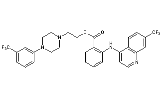 CAS Name: 2-[[7-(Trifluoromethyl)-4-quinolinyl]amino]benzoic acid 2-[4-[3-(trifluoromethyl)phenyl]-1-piperazinyl]ethyl ester
