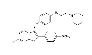 Additional Names: [6-hydroxy-3-[4-[2-(1-piperidinyl)ethoxy]phenoxy]2-(4-methoxyphenyl)]benzo[b]thiophene