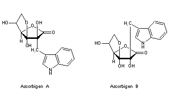 CAS Name: 2-C-(1H-Indol-3-ylmethyl)-b-L-lyxo-3-hexulofuranosonic acid g-lactone mixt with 2-C-(1H-indol-3-ylmethyl)-b-L-xylo-3-hexulofuranosonic acid g-lactone