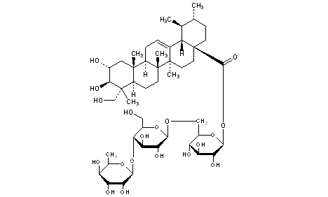 CAS Name: (2a,3b,4a)-2,3,23-Trihydroxyurs-12-en-28-oic acid O-6-deoxy-a-L-mannopyranosyl-(1®4)-O-b-D-glucopyranosyl-(1®6)-O-b-D-glucopyranosyl ester