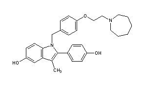 Additional Names: 1-[4-(2-azepan-1-ylethoxy)benzyl]-2-(4-hydroxyphenyl)-3-methyl-1H-indol-5-ol