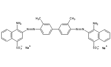 CAS Name: 3,3¢-[(3,3¢-Dimethyl[1,1¢-biphenyl]-4,4¢-diyl)bis(azo)]bis[4-amino-1-naphthalenesulfonic acid] disodium salt