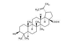 Literature References: Naturally occurring triterpene found in many plant sources, notably the bark of white birch trees, Betula alba L. Betulaceae. Melanoma-specific cytotoxic agent. Isoln: L. Ruzicka et al., Helv. Chim. Acta 21, 1706 (1938); and characterization: A. Robertson et al., J. Chem. Soc. 1939, 1267. Synthesis from betulin, q.v.: D. S. H. Kim et al., Synth. Commun. 27, 1607 (1997). Isoln and crystal structure of benzyl ester: G. Bringmann et al., Planta Med. 63, 255 (1997). Inhibition of HIV replication: T. Fujioka et al., J. Nat. Prod. 57, 243 (1994). Induction of apoptosis in human melanoma cells: E. Pisha et al., Nat. Med. 1, 1046 (1995). Mechanism of action study: S. Fulda et al., Cancer Res. 57, 4956 (1997). Pharmacokinetics in mice: G. O. Udeani et al., Biopharm. Drug Dispos. 20, 379 (1999). Tumor cell-specific cytotoxicity: V. Zuco et al., Cancer Lett. 175, 17 (2002). LC/MS determn in plasma: X. Cheng et al., Rapid Commun. Mass Spectrom. 17, 2089 (2003). Review of natural distribution: G. Pavanasasivam, M. U. S. Sultanbawa, Phytochemistry 13, 2002-2006 (1974); of anticancer activity: D. A. Eiznhamer, Z.-Q. Xu, IDrugs 7, 359-373 (2004); of chemistry, biology and therapeutic potential: R. H. Cichewicz, S. A. Kouzi, Med. Res. Rev. 24, 90-114 (2004); of biological properties: P. Yogeeswari, D. Sriram, Curr. Med. Chem. 12, 657-666 (2005).
