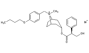 CAS Name: [3(S)-endo]-8-[(4-Butoxyphenyl)methyl]-3-(3-hydroxy-1-oxo-2-phenylpropoxy)-8-methyl-8-azoniabicyclo[3.2.1]octane bromide