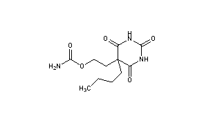 Additional Names: carbamic acid ester with 5-butyl-5-(2-hydroxyethyl)barbituric acid; 5-butyl-5-carbamoyloxyethylbarbituric acid; 5-butyl-5-(2-hydroxyethyl)barbituric acid carbamate; carbamic acid ester with 5-(b-hydroxyethyl)-5-butylmalonylurea; 5-(b-hydroxyethyl)-5-butylmalonylurea carbamate