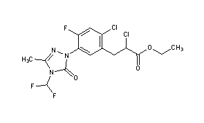 CAS Name: a-2-Dichloro-5-[4-(difluoromethyl)-4,5-dihydro-3-methyl-5-oxo-1H-1,2,4-triazol-1-yl]-4-fluorobenzenepropanoic acid ethyl ester