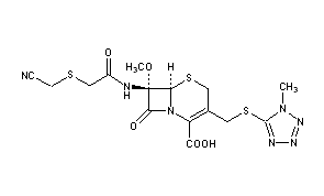 CAS Name: (6R,7S)-7-[[[(Cyanomethyl)thio]acetyl]amino]-7-methoxy-3-[[(1-methyl-1H-tetrazol-5-yl)thio]methyl]-8-oxo-5-thia-1-azabicyclo[4.2.0]oct-2-ene-2-carboxylic acid