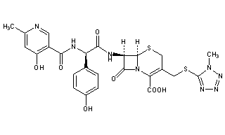 Additional Names: 7-[(R)-2-(4-hydroxy-6-methylnicotinamido)-2-(p-hydroxyphenyl)acetamido]-3-[[(1-methyl-1H-tetrazol-5-yl)thio]methyl]-8-oxo-5-thia-1-azabicyclo[4.2.0]oct-2-ene-2-carboxylic acid; D-7-[(4-hydroxy-6-methylnicotinamido)-4-hydroxyphenylacetamido]-3-(1-methyltetrazol-5-yl)thiomethylcephem-4-carboxylic acid