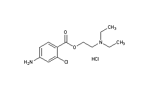 Additional Names: 2-chloro-4-aminobenzoic acid diethylaminoethyl ester hydrochloride
