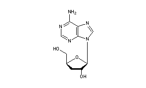 Literature References: First reported nucleoside antibiotic. Isoln from culture fluids of Cordyceps militaris (Linn.) Link: K. G. Cunningham et al., J. Chem. Soc. 1951, 2299; N. M. Kredich, A. J. Guarino, Biochim. Biophys. Acta 41, 363 (1960). Proposed structure: H. R. Bentley et al., J. Chem. Soc. 1951, 2301. Identity with 3¢-deoxyadenosine and revised structure: E. A. Kaczka et al., Biochem. Biophys. Res. Commun. 14, 456 (1964). Biosynthesis: R. Suhadolnik et al., J. Am. Chem. Soc. 86, 948 (1964). Synthesis: A. R. Todd, T. L. Ulbricht, J. Chem. Soc. 1960, 3275; W. W. Lee et al., J. Am. Chem. Soc. 83, 1906 (1961); E. Walton et al., ibid. 86, 2952 (1964); Y. Ito et al., ibid. 103, 6739 (1981). Cordycepin and cordycepin triphosphate have been used extensively in the study of messenger RNA transcription, see H. T. Shigeura, G. E. Boxer, Biochem. Biophys. Res. Commun. 17, 758 (1964); S. Penman et al., Proc. Natl. Acad. Sci. USA 67, 1878 (1970). Reviews: J. J. Fox. et al., "Nucleoside Antibiotics" in Prog. Nucleic Acid Res. Mol. Biol. 5, 258-262 (1966); A. J. Guarino, "Cordycepin" in Antibiotics I, D. Gottlieb, P. Shaw, Eds. (Springer-Verlag, New York, 1967) pp 468-480.