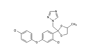 CAS Name: 1-[[2-[2-Chloro-4-(4-chlorophenoxy)phenyl]-4-methyl-1,3-dioxolan-2-yl]methyl]-1H-1,2,4-triazole