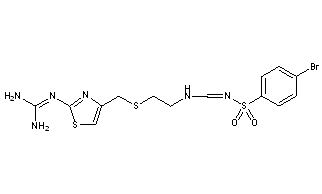 Additional Names: N-p-bromobenzenesulfonyl-N¢-[2-[[[2-[(aminoiminomethyl)amino]-4-thiazolyl]methyl]thio]ethyl]formamidine; p-bromo-N-[[[2-[[[2-[(diaminomethylene)amino]-4-thiazolyl]methyl]thio]ethyl]amino]methylene]benzenesulfonamide