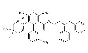 CAS Name: 5-(5,5-Dimethyl-1,3,2-dioxaphosphorinan-2-yl)-1,4-dihydro-2,6-dimethyl-4-(3-nitrophenyl)-3-pyridinecarboxylic acid 2-[phenyl(phenylmethyl)amino]ethyl ester, P-oxide