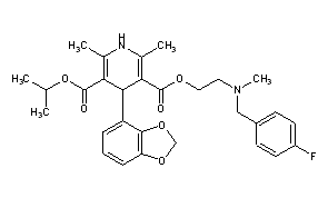 CAS Name: 4-(1,3-Benzodioxol-4-yl)-1,4-dihydro-2,6-dimethyl-3,5-pyridinedicarboxylic acid 2-[[(4-fluorophenyl)methyl]methylamino]ethyl 1-methylethyl ester