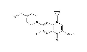 CAS Name: 1-Cyclopropyl-7-(4-ethyl-1-piperazinyl)-6-fluoro-1,4-dihydro-4-oxo-3-quinolinecarboxylic acid