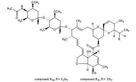 Literature References: Mixture of semisynthetic avermectins, q.v.; containing 90% or more of component B1a and 10% or less of component B1b. Prepn: H. H. Mrozik, US 4427663 (1984 to Merck & Co.). Synthesis: R. J. Cvetovich et al., J. Org. Chem. 59, 7704 (1994) and biological activity: T. K. Jones et al., J. Agric. Food Chem. 42, 1786 (1994). Mechanism of action study: J. P. Arena et al., J. Parasitol. 81, 286 (1995).