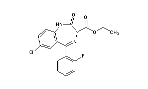 Additional Names: ethyl 7-chloro-5-(o-fluorophenyl)-2,3-dihydro-2-oxo-1H-1,4-benzodiazepine-3-carboxylate